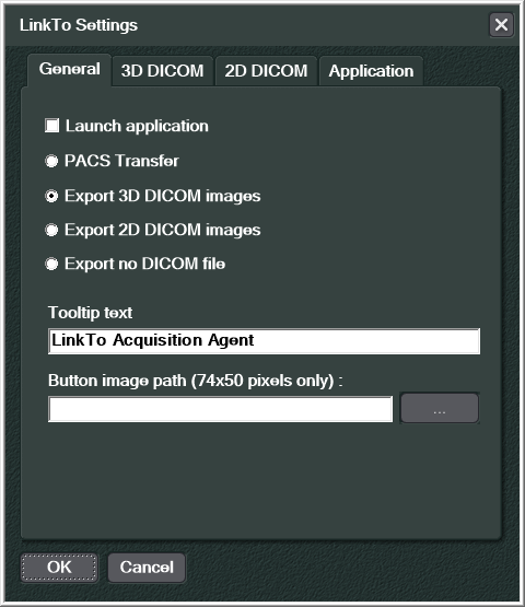 Select the Export 3D DICOM images checkbox, and type LinkTo Acquisition Agent in the Tooltip text box.