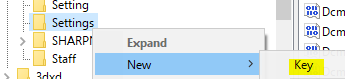 Right-click the Settings folder, point to New, and then click Key. Then, name the new key ExtendedExport.