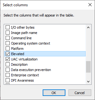 Find Acquisition Agent.exe in the Name column, and check if Yes appears in the Elevated column. If the program is elevated, it is being run as an administrator; if the program is not elevated, it is not being run as an administrator.