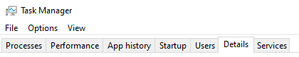 Open Task Manager, and then select the Details tab.