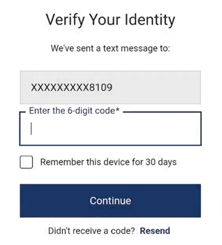 Note: Some users will be required to complete an additional verification using a mobile phone to receive a code, which is then entered onscreen. Once a user has completed this step, he/she might not be asked to do this again for some time.