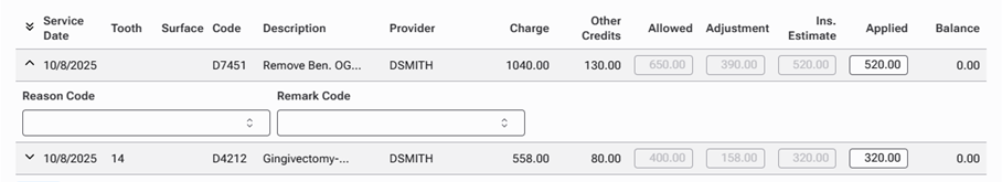 You can also record denial codes on a payment for a claim on an ERA from the Bulk/ERA Insurance Payments page.