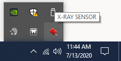 The X-RAY SENSOR icon appears in the system tray. Click on the icon. The acquisition box for the sensor appears.