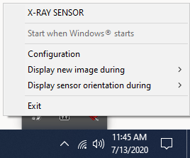 To access the additional settings, right-click the XRAY SENSOR icon in the system tray, and then select Configuration.