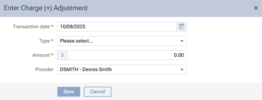 From the Type list, select an adjustment type that affects production (such as Charge Adjustment or Transfer Charge Balance).
