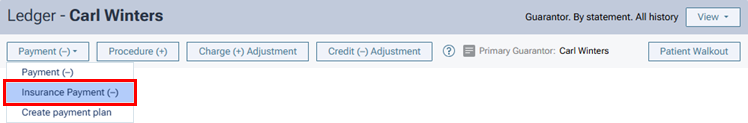 On the Ledger page, click (or tap) Payment, and then select Insurance Payment.