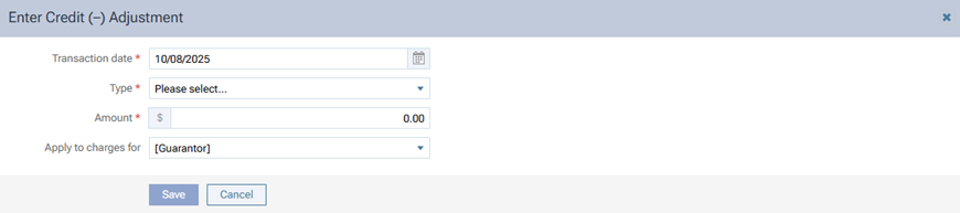 The Enter Credit Adjustment dialog box appears.