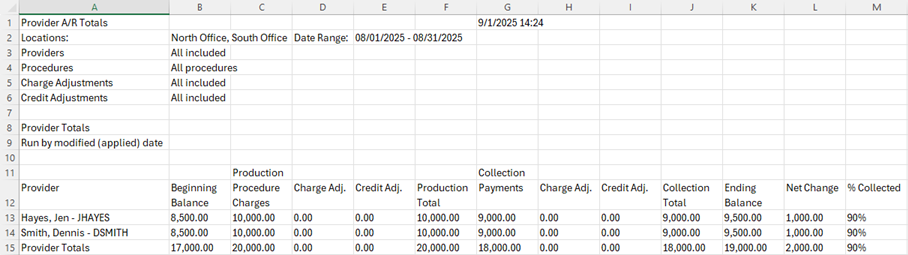 Provider A/R Totals Report