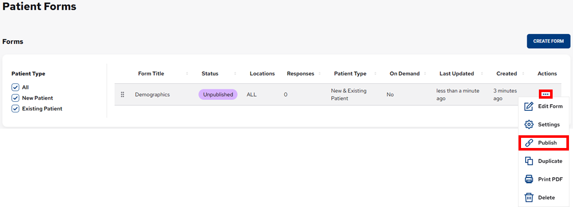 You can publish patient forms as needed.