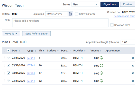 On the Tx Planner tab of a patient's clinical record, do one of the following: