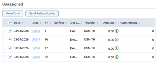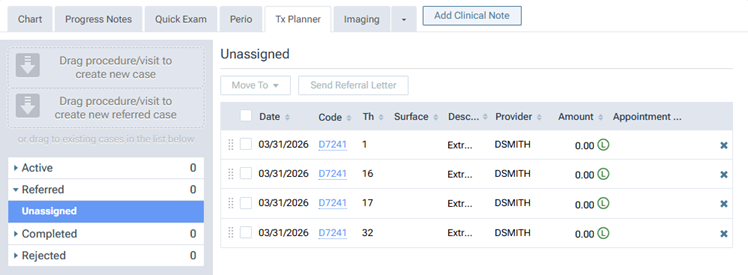 On the navigation panel (on the left), under Referred, select Unassigned. The procedures that have not been assigned to a case appear on the right.
