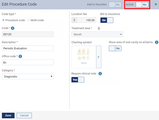 Procedure codes represent the services that you render and products that you sell at your locations. You can reactivate a procedure that was inactivated previously so that it again appears wherever procedure codes can be selected.