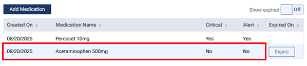 Note: Alternatively, you can expire the medication. An expired medication remains in the patient's record but is inactive.