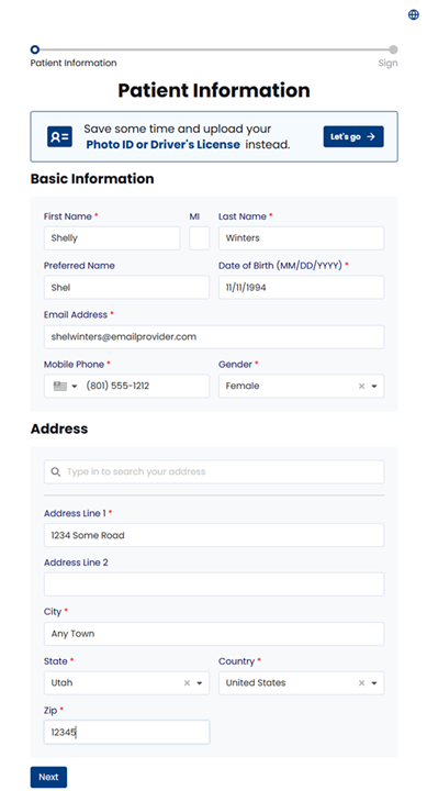 Sample online form with demographics