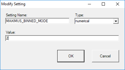 If the Setting MAXIMUS_BINNED_MODE does not exist, do the following to add it: