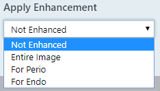 The enhancement filter should typically not be used in combination with Schick device filters. This is because the various Schick device filters already include sharpening for the image, and it is not recommended to turn on Dentrix Ascend Imaging's enhancement filters as it may over-sharpen the image. So, Not Enhanced should be selected in the Apply Enhancement list.