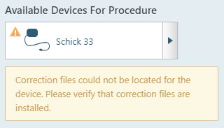 An error message appears, indicating that the correction files could not be found. This occurs because it takes a few seconds for the files to be installed from the sensor.