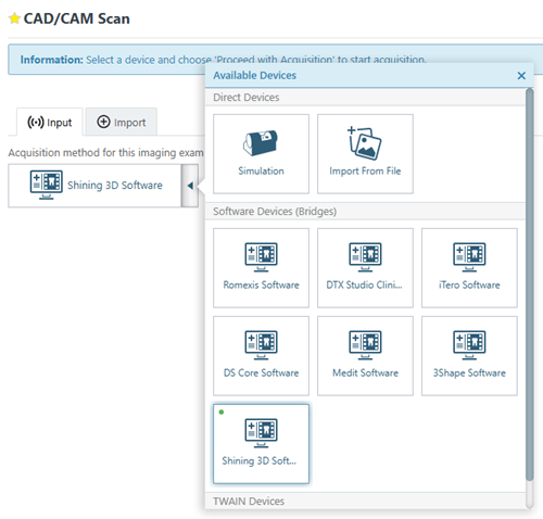 All acquisition devices must be configured and functioning in the Shining 3D software on each computer that will acquire images using the Shining 3D software bridge. Please contact Shining 3D Support for assistance.