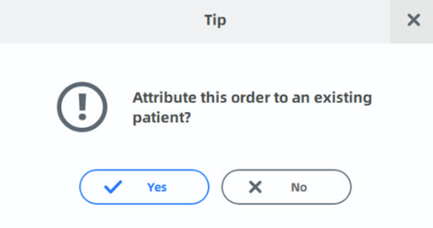 If you are asked to attribute the order to an existing patient, click Yes.