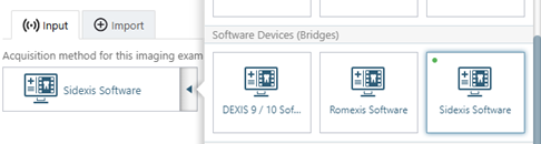 On the Available Devices menu, select Sidexis Software.