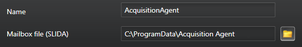 In the Name box, enter AcquisitionAgent. Set the path of the Mailbox file (SLIDA).