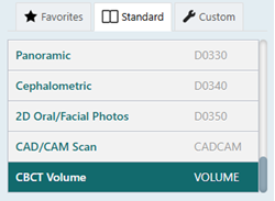Select the CBCT Volume imaging procedure.