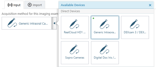 On the Available Devices menu, select Generic Intraoral Camera.