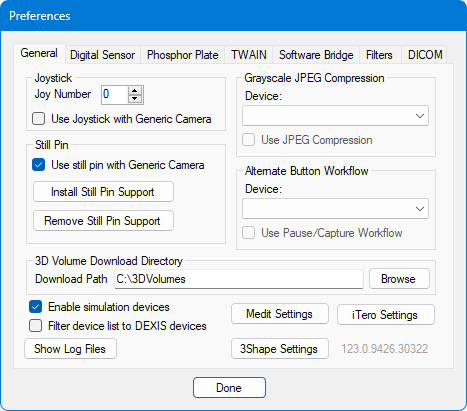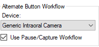 The functionality of the second button press is determined by the Alternate Button Workflow options in the acquisition agent preferences (with Generic Intraoral Camera selected as the Device, the state of the Use Pause/Capture Workflow checkbox).