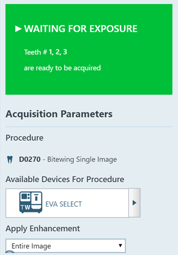 The ImageWorks Eva Select sensor is now functional in Dentrix Ascend Imaging. To acquire a test image, do the following: