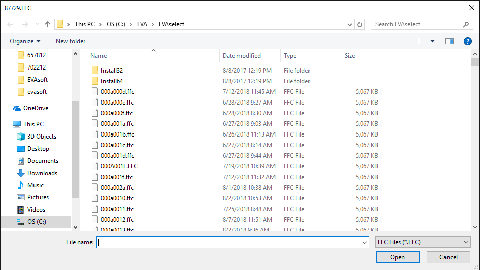 Navigate to C:\EVA\EVAselect (if that directory is not already being viewed).
