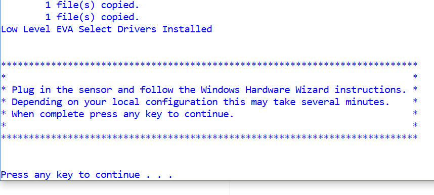 If a generic Windows Hardware Wizard window appears, an Eva Select sensor was not installed previously). Click OK to progress through the wizard.