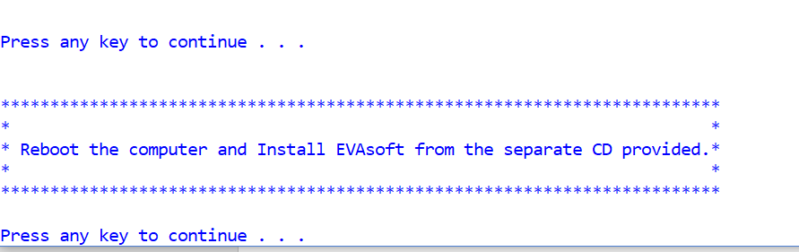 When a note about installing EVAsoft appears, ignore it, and press any key.