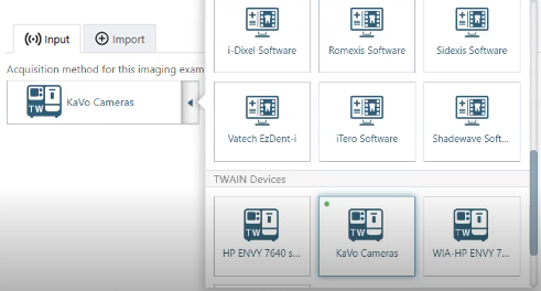 On the Available Devices menu, select KaVo Cameras (under TWAIN Devices).