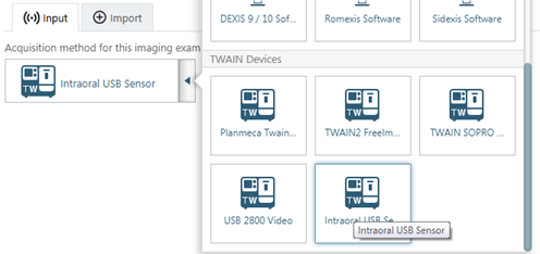 Note: It is possible that the Polaroid Dental Imaging TWAIN driver has already been installed and configured on the computer if the Polaroid Dental Imaging sensor was working in the office prior to the office using Dentrix Ascend Imaging. To verify if the TWAIN driver is already installed, once the acquisition agent has been installed, open Dentrix Ascend Imaging, start an acquisition, and expand the acquisition device menu to see if Intraoral USB Sensor appears (under TWAIN Devices); if so, skip to the "Testing" section.