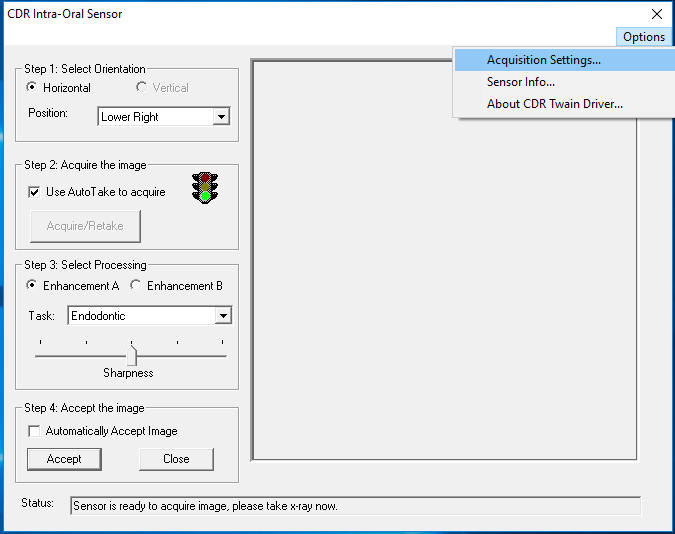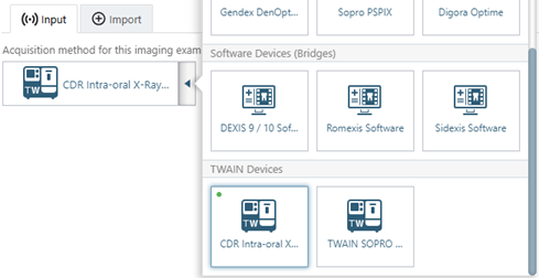 On the Available Devices menu, select CDR Intra-oral X-ray Acquisition (under TWAIN Devices).