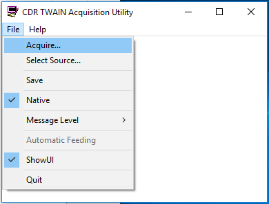 Start the CDR TWAIN Acquisition Utility (Start > All Programs > Sirona Dental > CDR TWAIN Acquisition Utility) as an administrator.