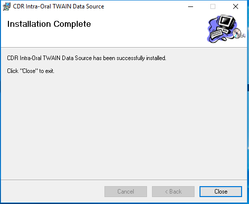 Note: It is possible that the Schick TWAIN driver has already been installed and configured on the computer if the Schick sensor was working in the office prior to the office using Dentrix Ascend Imaging. To verify if the TWAIN driver is already installed, once the acquisition agent has been installed, open Dentrix Ascend Imaging, start an acquisition, and expand the acquisition device menu to see if CDR Intra-oral X-ray Acquisition appears (under TWAIN Devices); if so, skip to the "Testing" section.
