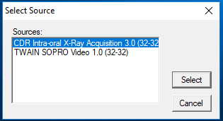 Select CDR Intra-Oral X-Ray Acquisition 3.0, and then click Select.