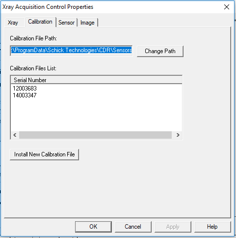 Click Install New Calibration File to install the calibration file for each Schick CDR sensor in your office.