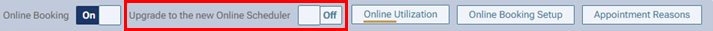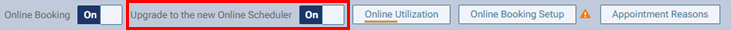 If your organization did use the legacy online booking service prior to April 22, 2026, your locations are still using the legacy online booking service (the Online Booking switch is still available and turned On). To upgrade to the new online scheduler, you must turn on the Upgrade to the new Online Scheduler switch and perform other configuration steps as explained in this topic.