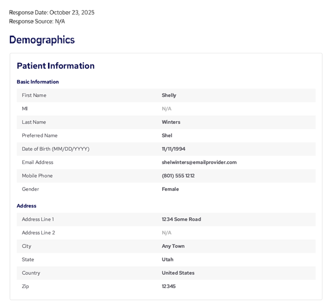Use the information on the form to update or verify information in the patient's record. You can print the information so you have a hard copy to reference as you navigate the patient's record.