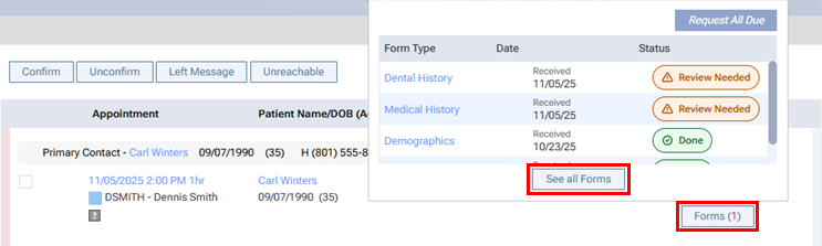 Click (or tap) See all Forms to open the patient's Document Manager page.