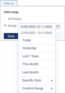 Range - To view ERAs on a specified date or within a specified date range. With this option selected, click (or tap) in the box, and then select Today, Yesterday, Last 7 Days, This Month, Last Month, Specific Date (and choose the date), or Custom Range (and choose the starting and ending dates).