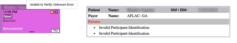 If the status is Unable to verify, you can click the tooltip to view the response from the payer or the reasons why eligibility could not be verified.