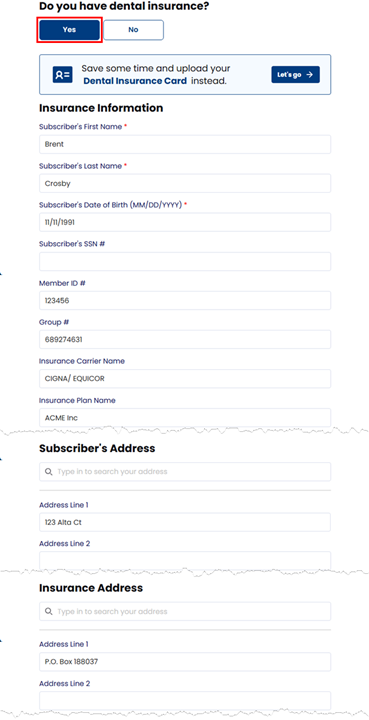 Orthodontia Patient - Set the switch to Yes if the patient is currently undergoing orthodontic treatment, or leave the switch set to No if the patient is not currently undergoing orthodontic treatment.