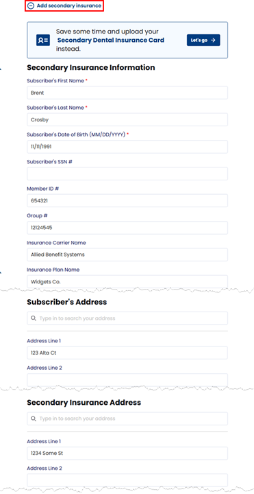 For each additional household member that you want to add, click (or tap) Add Patient, and then enter that household member's name (first, last, and middle initial), gender, birth date, and preferred name (if applicable).