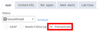 Premedicate - Select this checkbox if the patient prefers to be medicated before any of the procedures are performed or if any of the procedures require premedication.