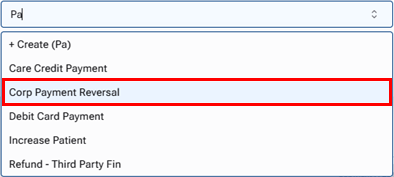 If the correct reason does not exist, finish typing the name of the reason (spaces are allowed). Make sure that the name is capitalized as desired. Then, select + Create ([reason name]) to create the reason and attach it.