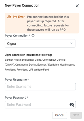 Note: Eligibility Pro requests require you to first enter your usernames and passwords for payer websites in the Payer Connection Portal. See the first section for more detail.