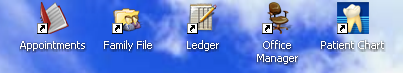 Clicking the first four buttons on this toolbar will start Family File, Ledger, Appointment Book, and Office respectively.